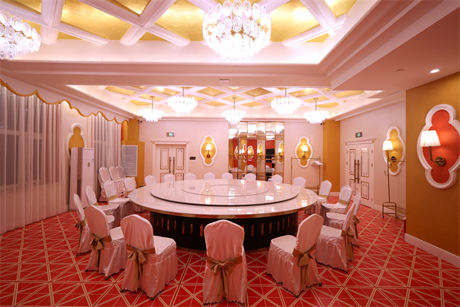 皇宮廳—金碧輝煌、皇宮式裝修,面積1038㎡,層高8.6米,配備愛情階梯、軌道威亞、二層觀禮臺(tái)、浪漫燈光秀、旋轉(zhuǎn)升降舞臺(tái)、頭頂天幕連接開合大屏。可承接50桌的大型宴會(huì),也可舉辦600人的大型會(huì)議;還可用作會(huì)展、車展場(chǎng)地,每逢節(jié)假日還為市民上演文藝節(jié)目。